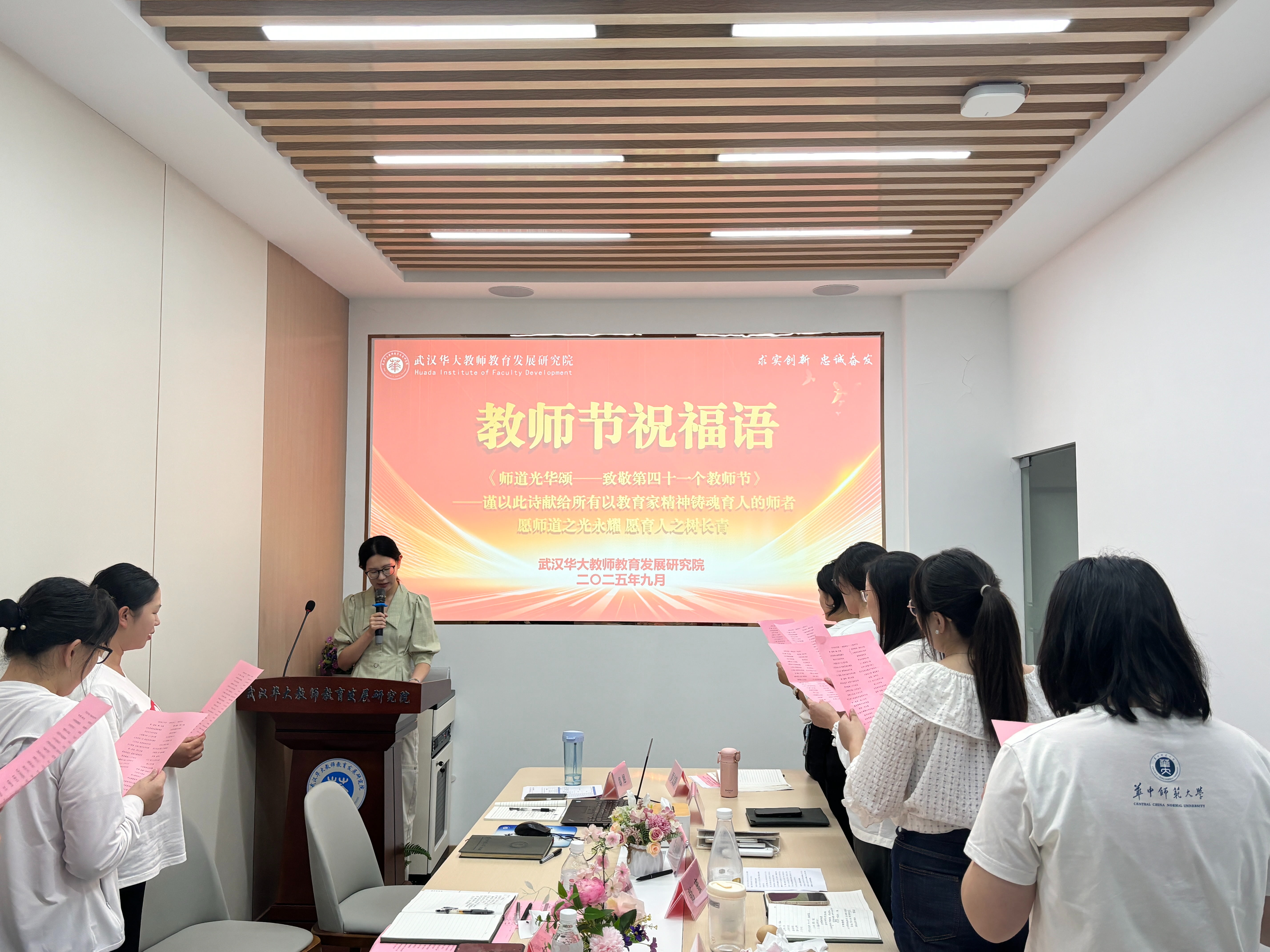 在第四十一个教师节来临之际,武汉华大教师教育发展研究院近日召开2025年上半年工作总结大会,并特别举办了庄严而温馨的教师节礼赞活动。全院教职工齐聚一堂,以一首原创长篇诗歌《师道光华颂》向全体教育工作者致以崇高敬意,展现了华大人对教育事业的深厚情怀与责任担当。