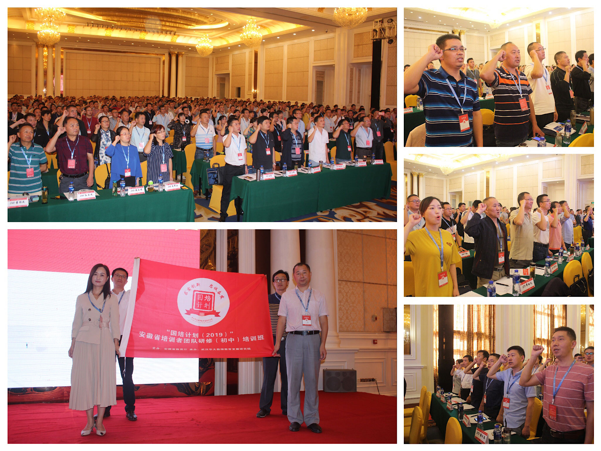 长江边、汉南里,一支精神抖擞、庄严肃穆的学习队伍面对班旗庄严宣誓,组成这支队伍的是来自“国培计划(2019)——安徽省培训者团队研修(初中)培训班”的448名学员们,班旗招展,安徽省教师培训者征程万里、重任在肩。