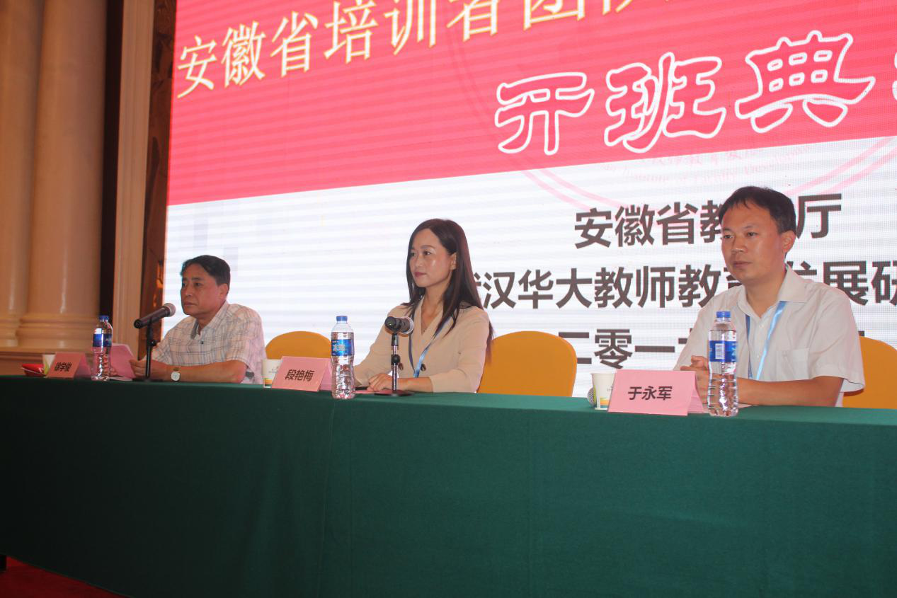 9月23日,“国培计划(2019)——安徽省培训者团队研修(初中)培训班”顺利开班,我院执行院长徐学俊出席开班典礼。徐院长对远道而来的安徽省培训者团队表示热烈欢迎,同时表达了对学员们克服重重困难、展示安徽省“教师之师”良好形象的肯定,期待学员们能够切实践行“国培计划”对参训人员的要求,发挥安徽省教师培训者的引领示范作用。