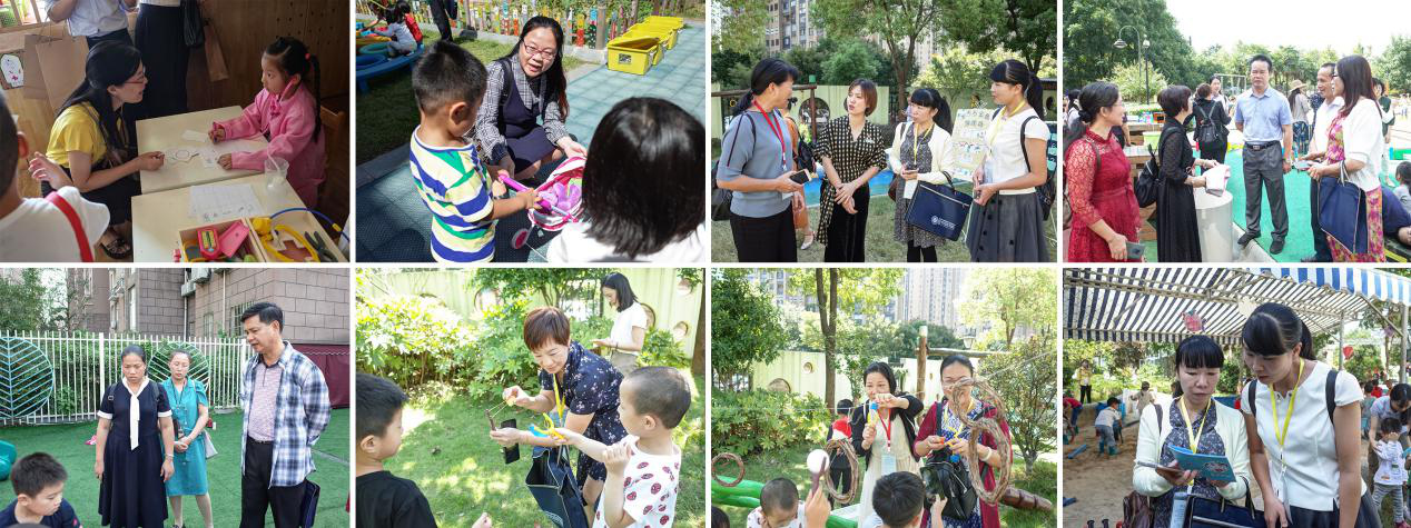 以“共情陪伴,静待花开”为理念的花园幼儿园,让学员们懂得如何“共情”;以“约会童话,润泽童年”为理念的桃园幼儿园,让学员们感受到童话与游戏完美结合的魅力;以“基于自然,健康发展”为理念的半山幼儿园,让学员们学到了物尽其用、人与自然结合而生的理念; 以“家园共育,资源共享”为理念的紫荆幼儿园,则更是通过安吉游戏的践行,让老师们懂得如何让孩子在游戏中得到爱、冒险、喜悦、投入与反思。