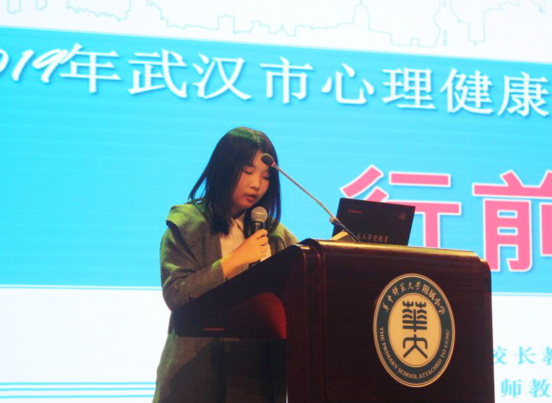 接着,武汉市常青第一中学的王翌老师作为学员代表发言,王老师表示,作为一线心理健康教师,在教学综合素质与教学实践技术方面还有诸多不足,此次培训为每一位老师提供了优良的学习平台,自己一定会珍惜此次学习机会,潜心学习,遵守学习纪律,为武汉市心理健康教育贡献坚实力量。