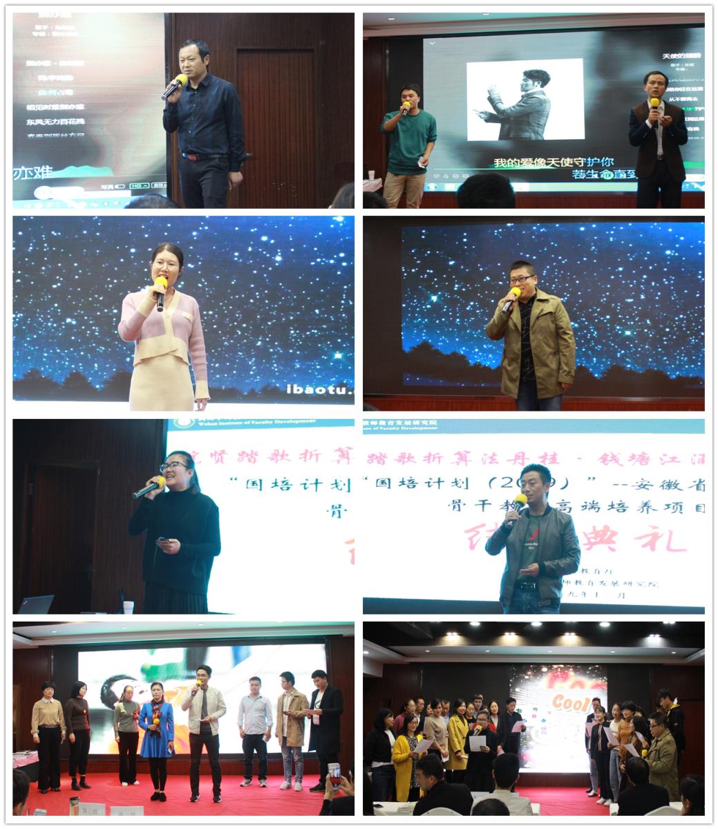 相见时难《别亦难》,《再回首》20天学习历程,有求学途中的艰难困苦,也有学成归来的欢快喜悦,而今路途两侧的郁郁芳华不断延伸开去,象征着安徽教育的《明天会更好》……学员们以配乐朗诵、歌曲演唱等形式,抒发了对祖国的崇高敬意、对导师的真挚感谢、对同窗的深厚情谊。