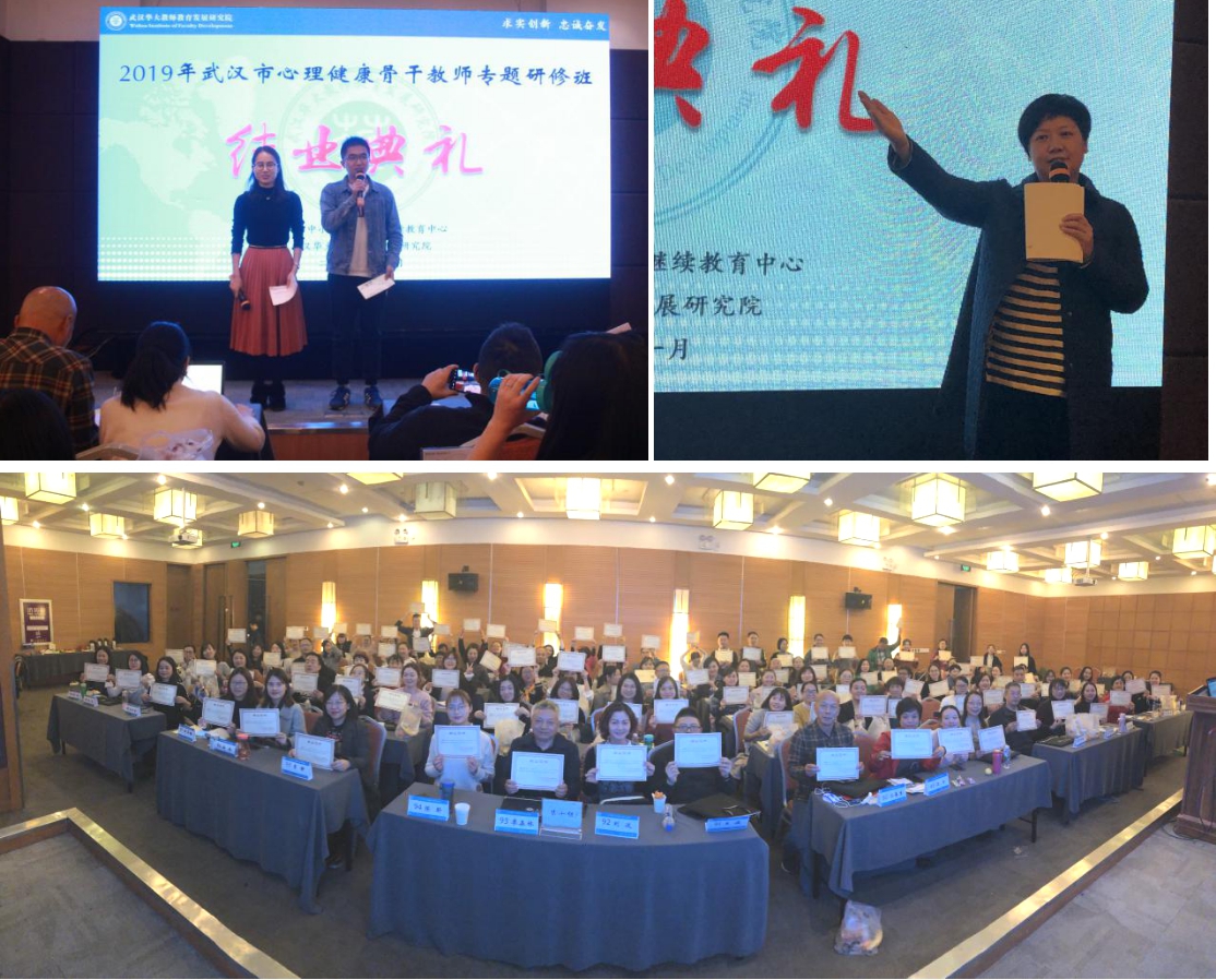 时光荏苒,短暂的培训学习转眼间就已到尾声。11月11日,2019年武汉市心理健康骨干教师专题研修班结业典礼顺利举行。在班主任老师的带领下,学员们共同回忆了培训学习的点点滴滴。随后,各组学员集思广益,发挥各自的才能,带来了一场精彩的结业汇报,为此次培训交上完美的答卷。学员们将理论付诸实践,带着智慧与爱,致敬职业,致敬专业,致敬终身热爱的事业!