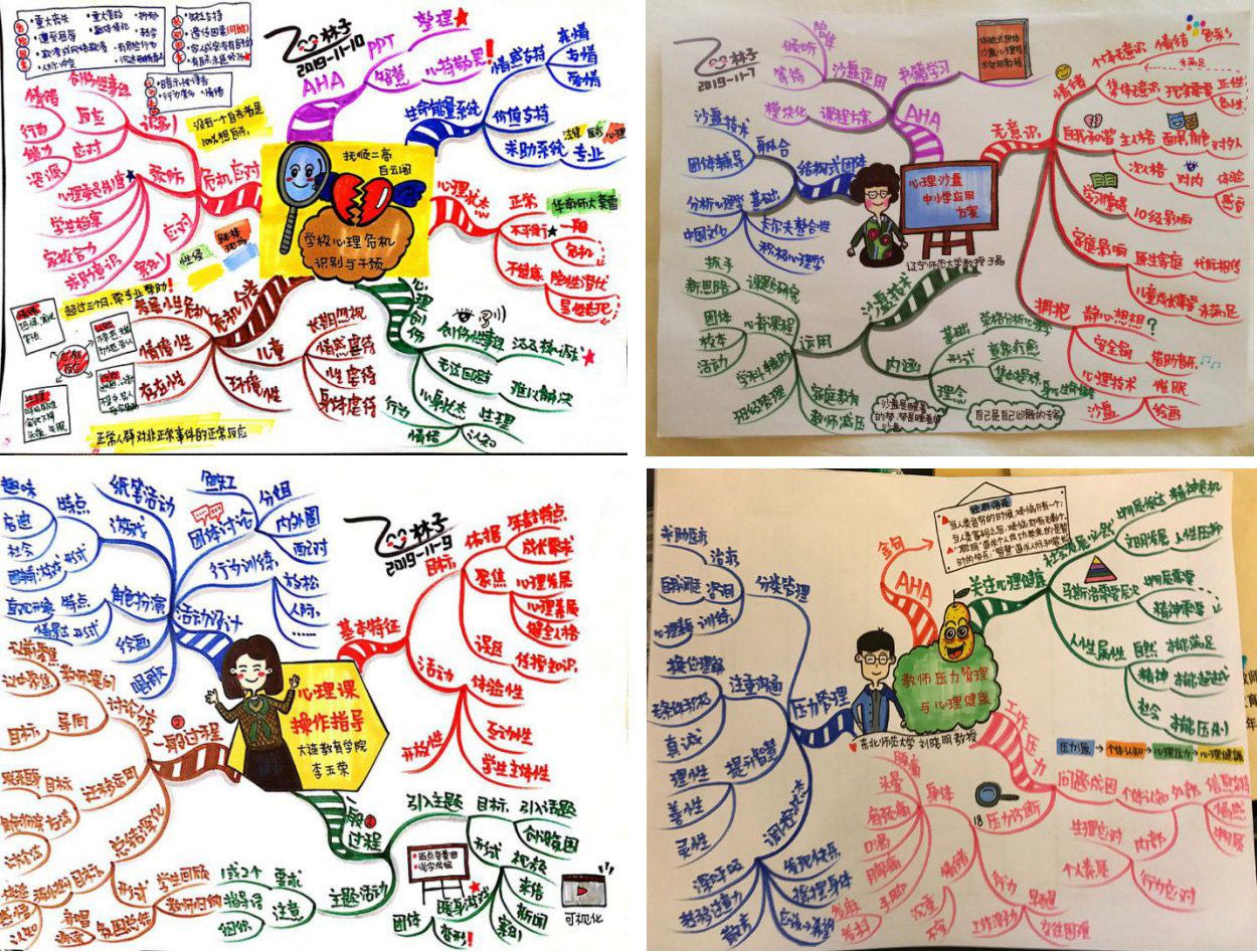 辽宁师范大学教授、结构式团体沙盘心理技术创始人于晶教授从沙盘心理技术在中小学中的应用出发,将沙盘与人的无意识领域联结,提出“沙盘是醒着的梦,梦是睡着的沙盘”这一有趣论断,深入浅出地道出了沙盘课程的意义及真谛。学员们还在于教授的指导下,用纸为沙盘,以笔为沙具,三三两两一组,体验了投射技术的实践运用与收获。