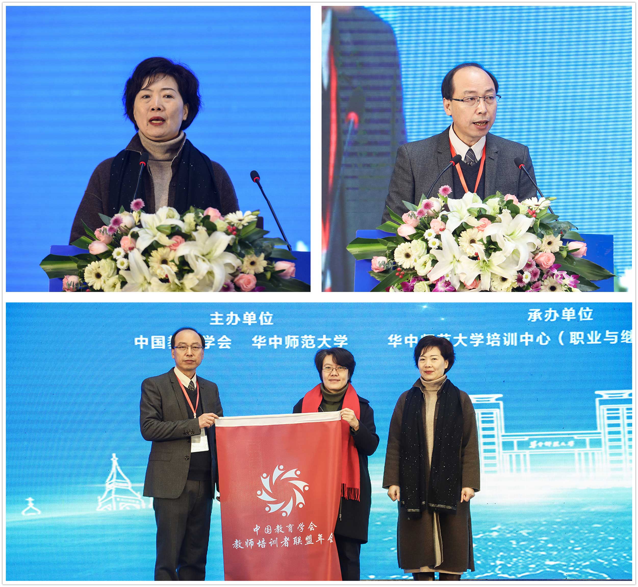 闭幕式上,华中师范大学培训中心主任(职业与继续教育学院院长)卢子洲研究员做总结报告。教师培训者联盟常务副秘书长、华东师范大学开放教育学院院长闫寒冰教授主持会旗交接。上海市师资培训中心代表赵洁慧副书记代表下一届年会主办方致辞。