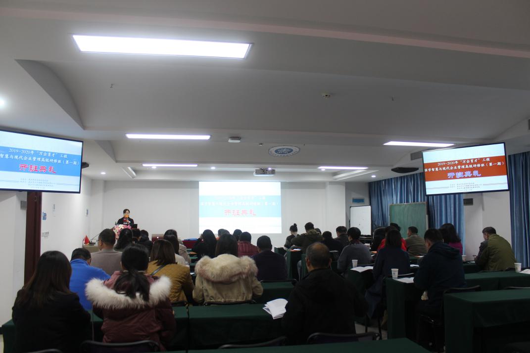 开班典礼伊始,由我院刘老师做欢迎致辞和本次开班仪式流程。企业新国学读书会会长吴荣华作为学员代表发言,她衷心感谢市委政府对中小型企业发展的大力支持,希望通过此次培训能够将国学智慧的精华运用到企业管理中去,不断提高企业管理水平,争取起到示范和榜样作用。