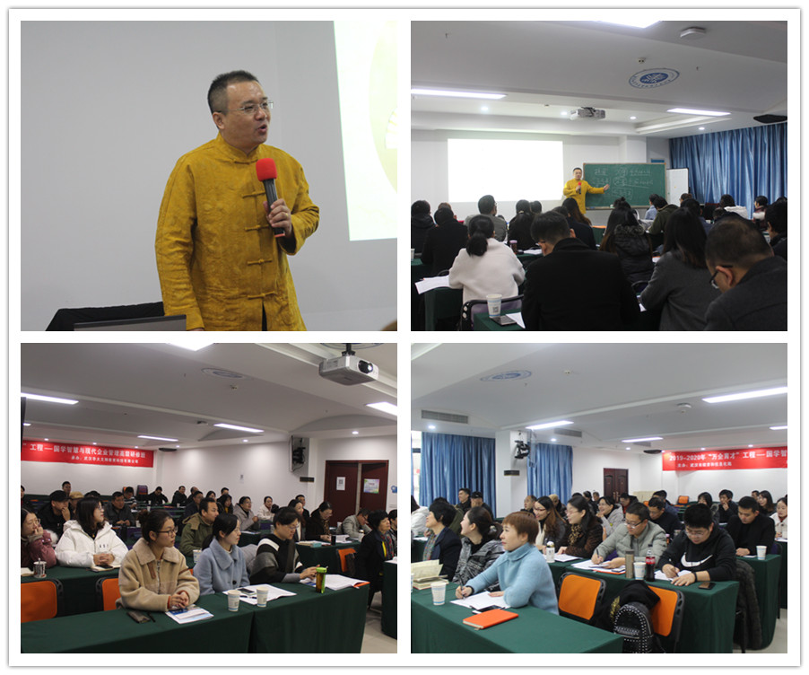 为贯彻落实武汉市委、市政府关于加快中小企业和民营经济发展的政策措施,落实为中小(民营)企业“送培训,送智力,送服务”活动,结合传统国学智慧,培养企业管理者的感召力、前瞻力、影响力,提高企业管理者的凝聚力和竞争力。12月6日-8日,由武汉市经济和信息化局主办,武汉华大文翔教育科技有限公司承办,武汉华大教师教育发展研究院协办的2019-2020武汉市“万企育才”工程公益培训——国学智慧与现代企业管理高级研修班(第一期)在我院成功举办。来自武汉市40多家企业的80余名中高层管理人员参加了此次为期3天的培训学习。