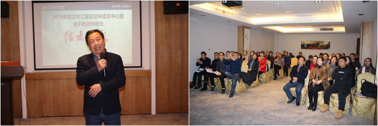 2019年12月12日,由江夏区教师继续教育中心主办、我院承办的“2019年武汉市江夏区初中语文中心组骨干教师专题研修班”于南京圆满完成。在本次培训班班主任、江夏区教师继续教育中心陈立老师的精心统筹下,培训在欢乐的氛围中落幕。结业典礼上,江夏区教师继续教育中心副主任李世辉对本次培训高度肯定,“本次培训为期8天,在六朝古都南京展开,整个培训期间,在座的语文教师们展现了江夏区教师优良的学习风貌,希望老师们学以致用,将培训的所学所思转化为真正的教学智慧,推动江夏区素质教育发展,提升语文教学质量。”