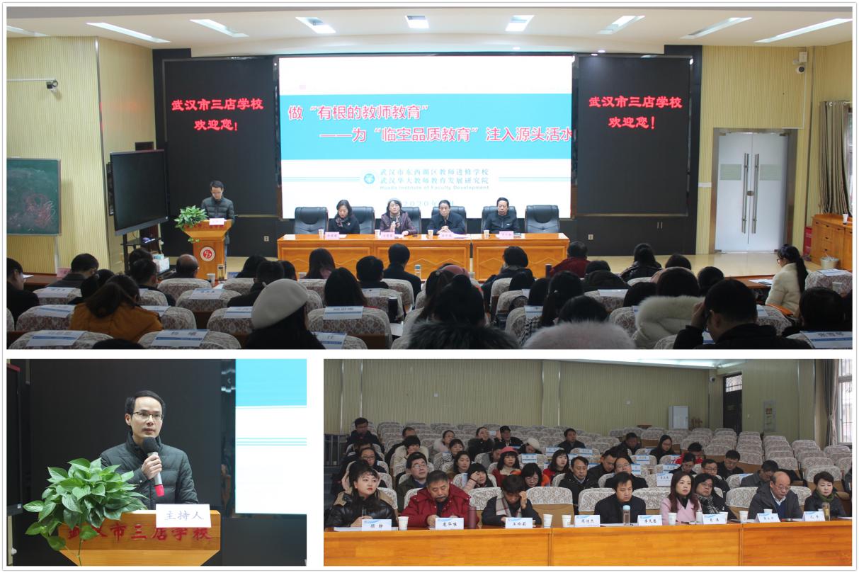 一元复始,万象更新。2019-2020年武汉市东西湖区第二届名师培养项目沉着稳重地跨过了沉淀洗练的2019年,又脚步铿锵地走向了厚积薄发的2020年。2020年1月4日,该项目的启动仪式在武汉市三店学校顺利召开,东西湖区教育局副局长李行铜、东西湖区教师进修学校校长方贵琴、我院执行院长徐学俊、东西湖区教育局教师工作科科长余建菊、东西湖区教师进修学校师训科副科长叶瑞烽、名师班导师组专家代表以及来自东西湖区的40位领雁教师共同出席了本次启动仪式。