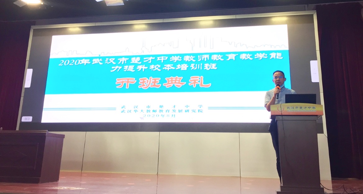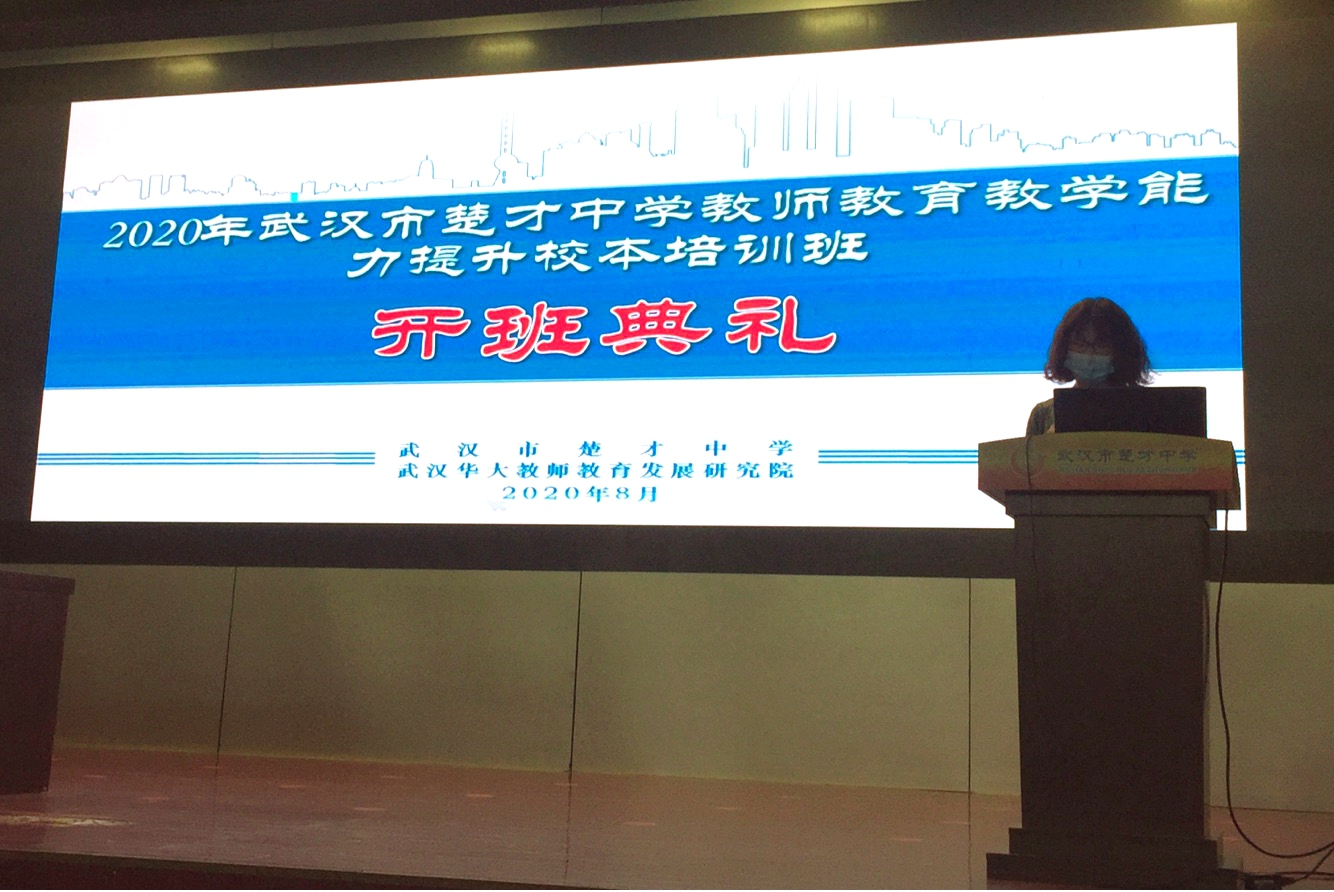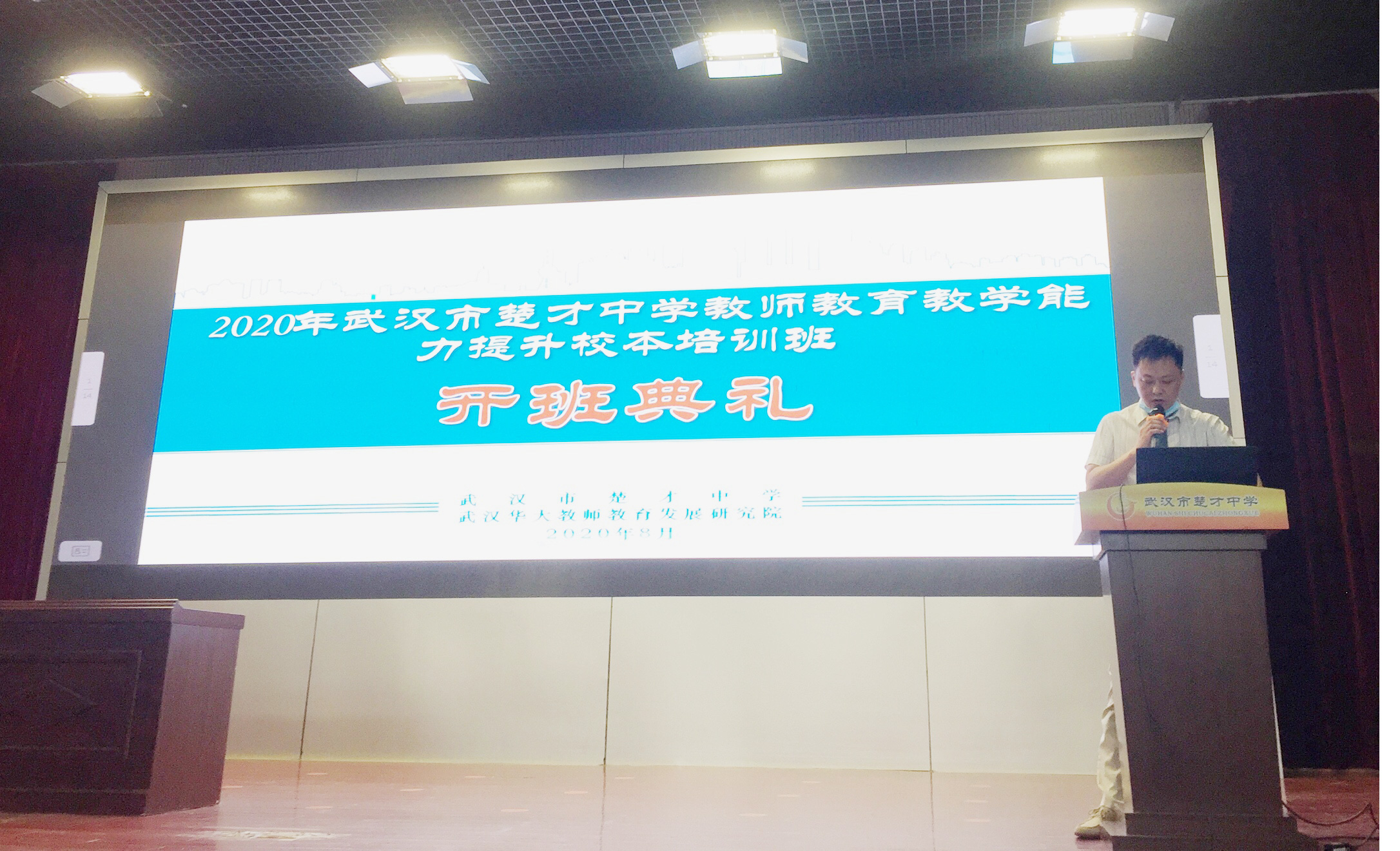 “宝剑锋从磨砺出,梅花香自苦寒来”。2020年8月6日上午8:30,由武汉市楚才中学主办,我院承办的“2020年武汉市楚才中学教师教育教学提升校本培训班”开班典礼在楚才中学报告厅顺利举行。武汉市楚才中学校长郭建斌、书记陈长俊、武汉华大教师教育发展研究院副院长曹波以及武汉市楚才中学100位教师共同出席了开班典礼。开班典礼由班主任刘老师主持。