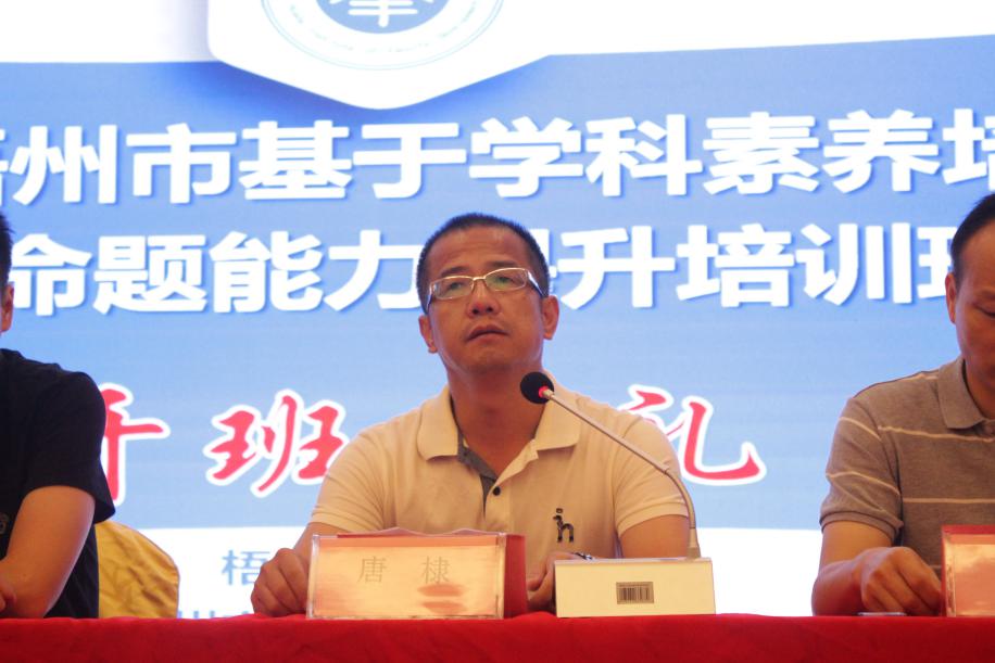 随后,梧州市教育局唐棣副局长从本次的培训意义、培训目标等方面对全体学员提出要求,并对本次培训效果提出了期待。他指出,培训课程是基于《义务教育课程方案及各学科课程标准》及《教育部关于加强初中学业水平考试命题工作的意见》,根据梧州市教育发展实际情况构建的体系,并立足专业理论强化、专业知识拓展、专业能力提升三大模块进行,希望全体学员珍惜这次宝贵的学习机会,了解学科核心素养的实施政策与我国中考改革的发展进程,深化学科核心素养的精神内涵,掌握中考命题方法,做好命题质量评价,从而提升自身的中考命题能力和试卷分析能力。对此,唐局长还表示:“希望各位老师能加强交流和沟通,共同将本次研修落实到实践中,为自身专业发展的续航蓄力。”