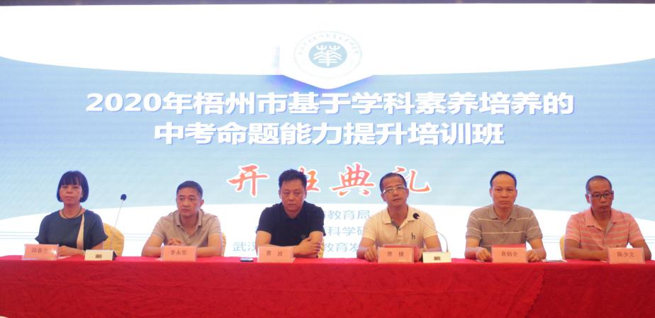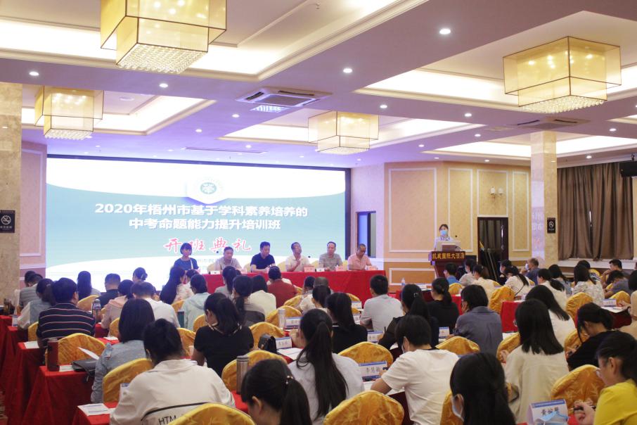 2020年8月17日,由梧州市教育局主办,我院承办的“2020年梧州市基于学科素养培养的中考命题能力提升培训班”在这拥有山水情怀的桂林正式拉开帷幕,梧州市教育局唐棣副局长、梧州市教育科学研究所袁炳全所长、李永坚副所长、陈少文主任、邱春兰主任及我院曹波副院长和本次培训班的89位学员共同出席了本次开班典礼。