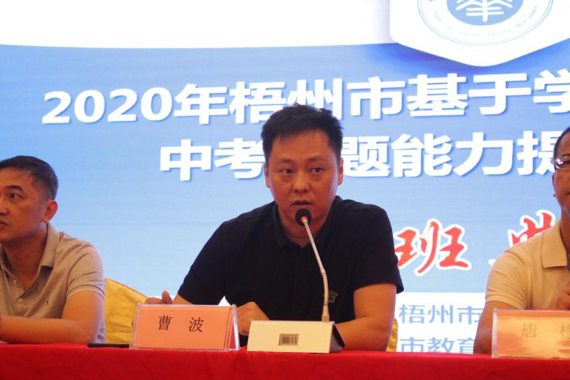 开班典礼伊始,我院副院长曹波院长致欢迎辞。曹院长首先代表我院对全体学员的到来表示热烈欢迎,并指出,各领导和负责人对此次培训工作的高度重视,以及梧州市要狠抓教师培训工作的决心。其次,他强调:“作为工作在教育前线的各科教师肩上责任之艰巨”,而为提高梧州市教师对中考命题的认识、坚定教师终身学习理念、树立岗位教学研究精神也是尤为重要。针对本次培训,我院高度重视,在课程设计上,层层深入,循序渐进;在师资配置上,认真遴选,精准对口;在后勤保障上,细致入微、追求质量。