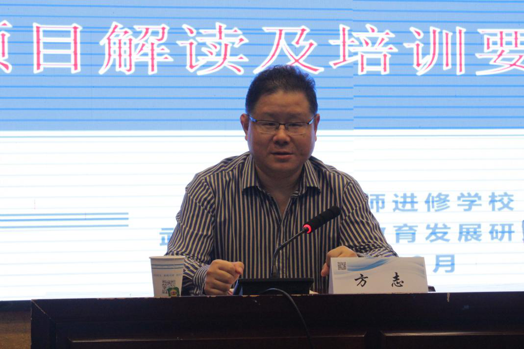 随后,黄陂区教师进修学校副校长方志围绕此次培训“培养工程是什么?它和一般的培训有什么区别?”、“为什么是在座50位学员参与培训?”、“两年培养周期中,我们应该怎么做?”三个核心问题进行项目解读以及培训要求说明,方校长表示,此次培训是不同于专题培训与高级研修的教师培训工程,在座的学员都是黄陂区优秀的青年骨干教师,希望学员们带着争当“种子”的雄心,在此次培训中收获满满。