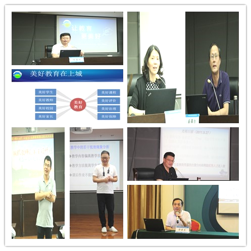 6月27日,学员们又来到了杭州市第十三中学——“杭城教育航母”。该校的办学思路是让学校成为“学生获得发展、教师获得发展、家长获得希望”的乐园,最终教会学生“学做人、学知识”。学校校园环境简洁明亮,由于学生刚完成期末测试,清爽的空气中弥漫着浓郁的学习味道。陈苍鹏主任做了主题为《实践探究——质量立校的助推剂》的专题讲座。陈主任从为什么要进行课堂教学改革、课改中的阻力、学校课堂教学改革历程、课改短板提质量几个方面讲述了本校的课堂教学的宗旨和主要模式。陈主任重点介绍了怎样通过课堂时空的解放,组织形式的解放,学习活动的解放,课堂评价的解放打造扎实、充实、丰实、真实的课堂。
