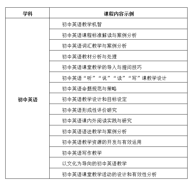 初中英语课程标准解读与案例分析,初中英语教材分析与处理,初中英语命题规范与策略,初中英语语法教学与案例分析
