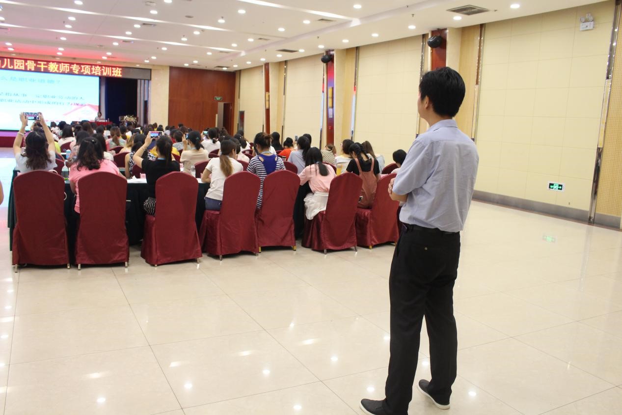 在武汉市教育局、武汉市中小学校长教师继续教育中心的大力支持下,我院作为此次武汉市民办幼儿园骨干教师专项培训的承办方,负责对武汉市200名民办幼儿园骨干教师进行专项培训。今日,彭主任旁听了教育部“国培计划”专家、湖北幼儿师范高等专科学校培训处处长金晓梅教授对学员们进行的《幼儿园教师的特殊使命与职业道德》专题讲座。彭主任高度重视参培老师的学习内容和生活条件,对此次的专项培训工作给予了关注,并对我院此次组织的武汉市民办幼儿园骨干教师专项培训活动做出了肯定性评价并提出了建议。