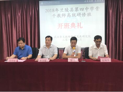 7月16日上午八点半,受山东兰陵县第四中学委托,由我院承办的“2018年兰陵县第四中学四中骨干教师高级研修班”开班典礼在华大教研院二楼教室顺利举行。参加此次开班典礼的有兰陵县第四中学校长林传聪、副校长吴绍廷、副校长赵瑞华、我院院长李兵,以及来自兰陵县第四中学的七十余名骨干教师们。开班典礼由班主任刘老师主持。