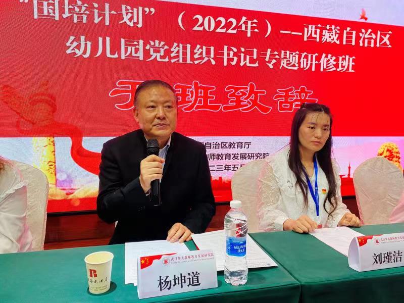人生百年,立于幼学。学前教育关系亿万儿童健康成长,关系千家万户幸福和谐,关系国家的发展和民族的未来。为认真贯彻落实党中央、国务院关于学前教育的重大决策部署,积极服务国家人口发展战略,深入实施《“十四五”学前教育发展提升行动计划》,大力推动西藏自治区学前教育高质量,5月8日上午由西藏自治区教育厅主办,我院承办的“国培计划”(2022年)--西藏自治区幼儿园党组织书记专题研修班在英雄之城--武汉顺利开班,我院执行院长杨坤道教授及来自西藏自治区各市县区的50位幼儿园党组织书记,共同参加了开班典礼仪式。