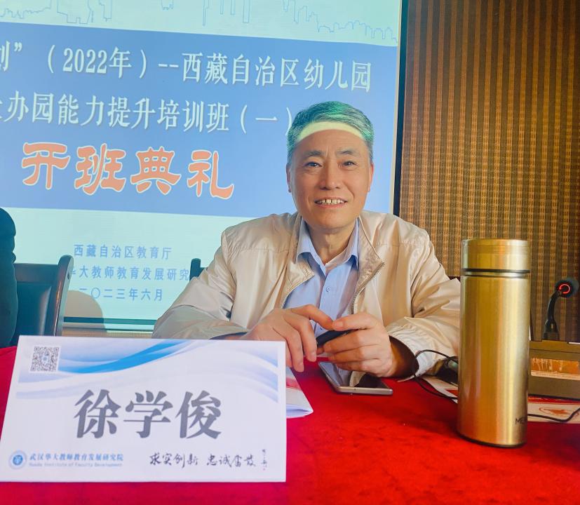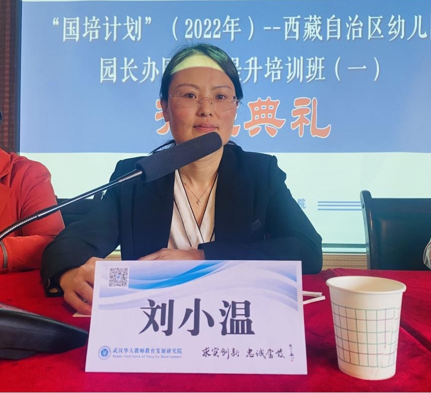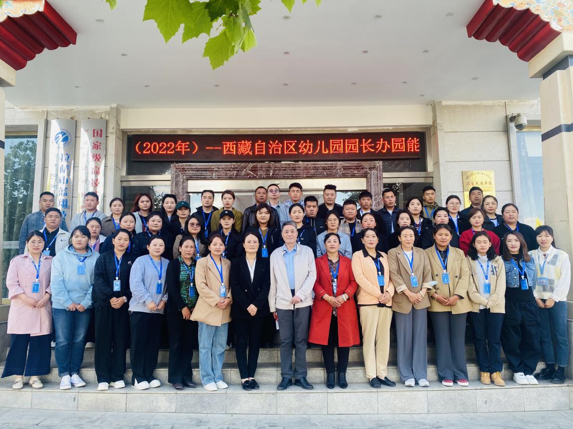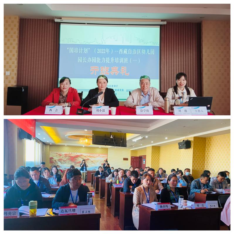 学前教育是终身学习的开端,是国民教育体系的重要组成部分,是重要的社会公益事业,幼儿园园长是教育创新与幼儿发展的中坚力量,是学前教育的领军人才,为进一步提升西藏幼儿园园长的领导管理能力,打造一支西藏自治区学前教育领军团队,充分发挥园长的示范引领辐射作用,结合西藏经济建设和教育发展的实际需求,6月5日上午,由西藏自治区教育厅主办,我院承办的“国培计划”(2022年)--西藏自治区幼儿园园长办园能力提升培训班(一)在日光城拉萨顺利开班。西藏自治区教育厅教师教育研究中心刘小温老师、我院执行院长徐学俊、培训班支部书记那曲市第四幼儿园西吉及培训班全体学员共同出席开班典礼,典礼由华大教研院项目负责人刘老师主持。