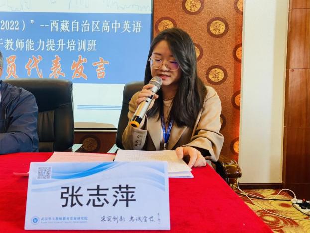 善学则多谋,善思则出新。本次培训班班长,来自拉萨北京中学的张志萍老师,作为学员代表发言,作为一名教师,肩负着培育莘莘学子的国家使命和社会责任,要紧跟时代步伐、勤于思考、善于思考,进一步深化认识、统一思想提高自身综合素质,才能适应形势要求,胜任将来的工作。并号召全体学员要真正做到学有所获,将知识为我所用,领会精髓要义,联系实际,带着问题,钻研琢磨使新思想、新知识、新经验入脑更入心。作为学员代表,她倍感自豪和荣誉,承诺在培训中提高觉悟,严守培训纪律,努力做到学以致用。