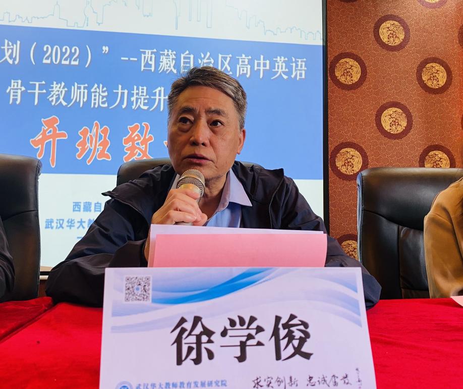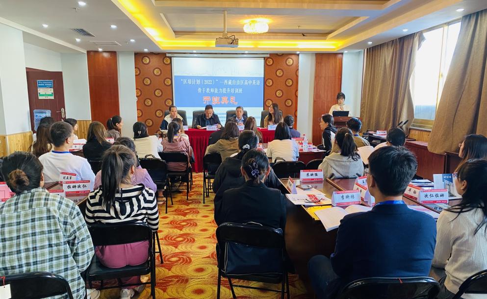 教育大计,教师为本。为落实《中共中央国务院关于全面深化新时代教师队伍建设改革的意见》《中小学教师职业道德规范》等若干文件指出建设教育强国,办好人民满意的教育,造就党和人民满意的高素质专业化创新型教师队伍是实现教育更高质量、更加公平、更有效率和更可持续发展的重要基础,由西藏自治区教育厅主办,我院承办的培计划”(2022年)--西藏自治区高中英语骨干教师能力提升培训班于611日上午在拉萨市顺利开班,出席活动的领导有西藏自治区教育厅教师教育研究中心负责人米玛多吉、我院执行院长徐学俊教授及培训班全体学员,齐聚一堂,共享开班典礼盛会。
