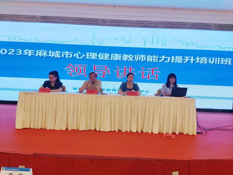 为贯彻落实《教育部关于印发中小学心理健康教育指导纲要》、《国务院关于实施健康中国行动的意见》等文件精神,加强麻城市中小学心理健康教育教师队伍建设,全面提升心理健康教师对学生心理危机干预能力,促进学生身心健康发展,2023年8月10日-11日,由麻城市中小学教师继续教育中心主办,我院承办的2023年麻城市心理健康教师能力提升培训班顺利举办。麻城市教育局教师管理股股长冯伦坤、麻城市中小学教师继续教育中心主任雷婷、麻城市教育局基础教育股干部吴莎以及来自麻城市各中小学近150名心理健康教师们出席了开班仪式。