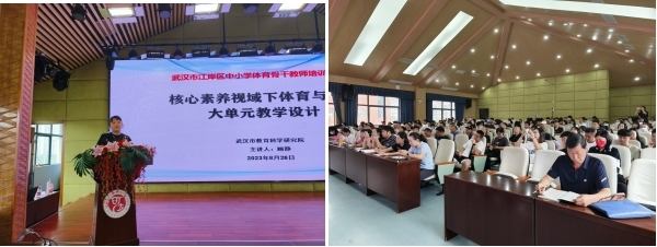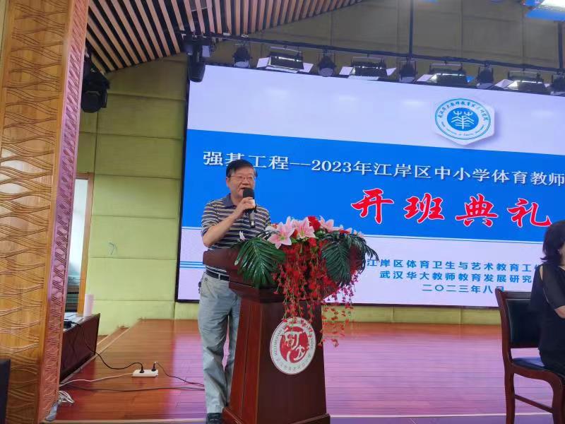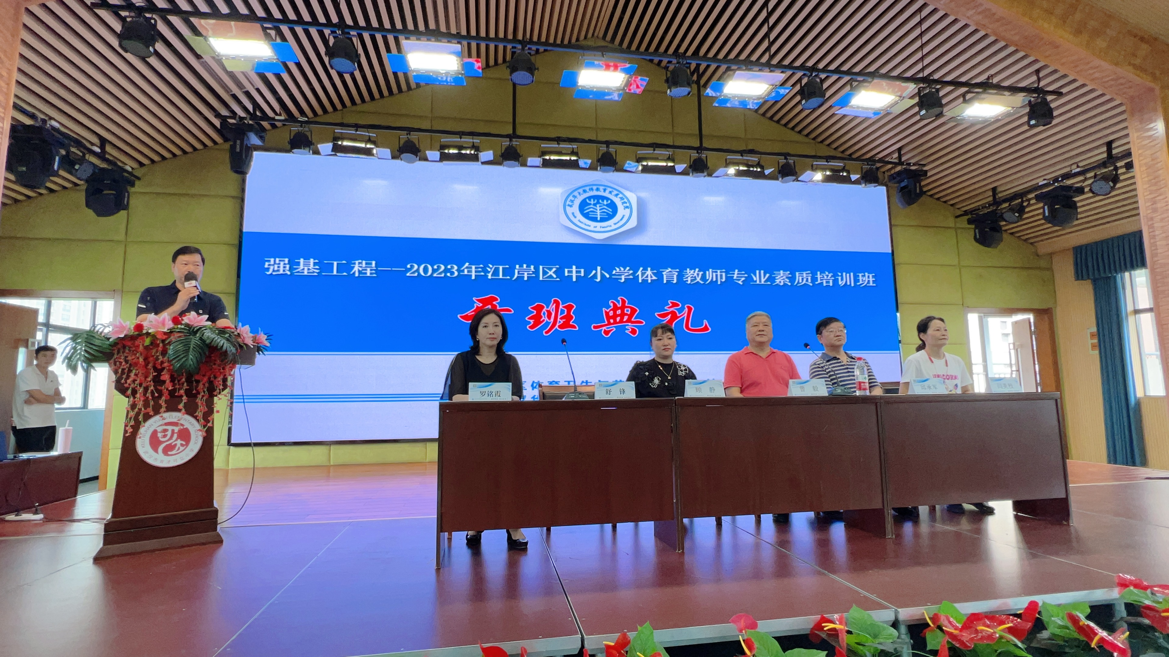 为了深入贯彻《义务教育体育与健康新课程标准(2022年版)》的精神,进一步提升体育教师的学科素养,提高学校体育教学质量,强基工程--2023年江岸区中小学体育教师专业素质培训班于8月26日在育才可立小学顺利开班,武汉市教科院体育教研员顾静特级教师、江岸区体卫艺站曾毅站长、江岸区体卫艺站邱承军书记、育才可立小学罗铭霞校长、书记、江岸区体卫艺站中学体育教研员闫美枝老师、江岸区体卫艺站小学体育教研员舒锋老师出席了开班典礼,来自江岸区各个中小学体育教师共计300余人参加培训。