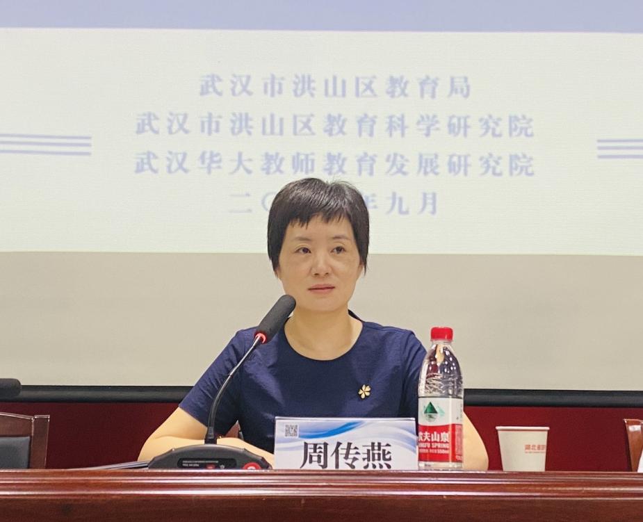武汉市洪山区教育局党委委员、副局长周传燕出席开班典礼,周局长从高起点、高质量两个维度为切入点,从三个方面发表讲话。周传燕副局长提到,培养造就一支素质优良、创新务实的后备干部队伍,事关全区教育高质量发展大局,她对全体学员通过逐层选拔顺利进入培训班表示祝贺;周传燕副局长强调:一要提高站位,充分认识培训重要意义。要切实增强责任感和紧迫感,不断提高自身综合素质,为洪山教育高质量发展贡献力量。二要明确任务,准确把握培训内容精髓。要有长期学习目标和任务,认真制定和执行学习计划,以问题为导向,以目标为引领,以实践为方向。三要学用结合,增强干事创新能力。要立足岗位,注重在实践中进一步增强能力、提高水平,把所学的知识运用到实践中去,做到学以致用,切实提高综合能力与管理水平。