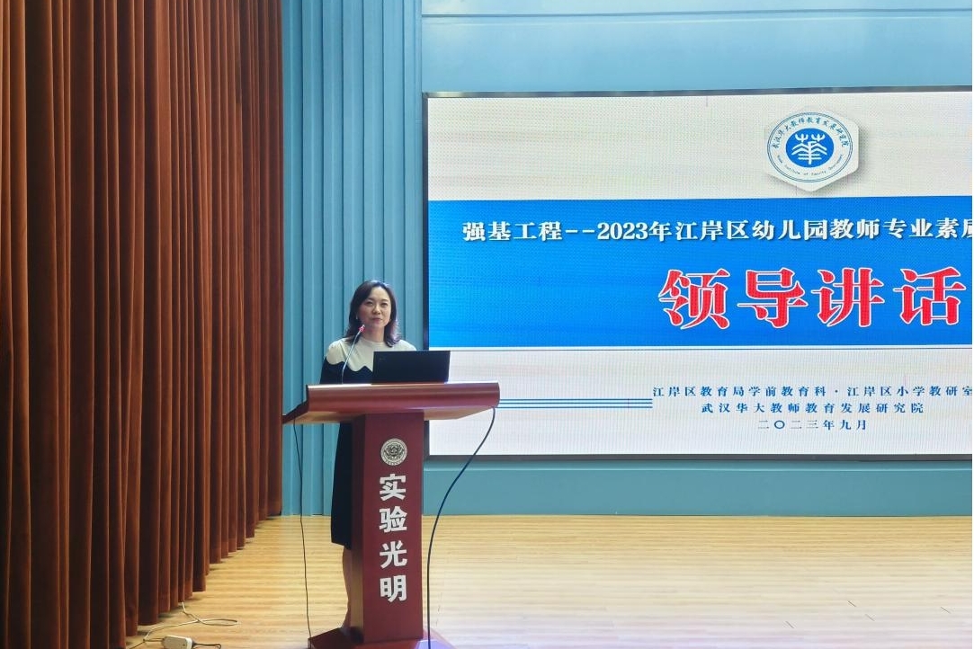 2023年9月22日下午,由江岸区教育局学前教育科、江岸区小学教研室主办,武汉华大教师教育发展研究院承办的强基工程--2023年江岸区幼儿园教师专业素质能力提升培训于武汉市江岸区实验光明幼儿园顺利开班。