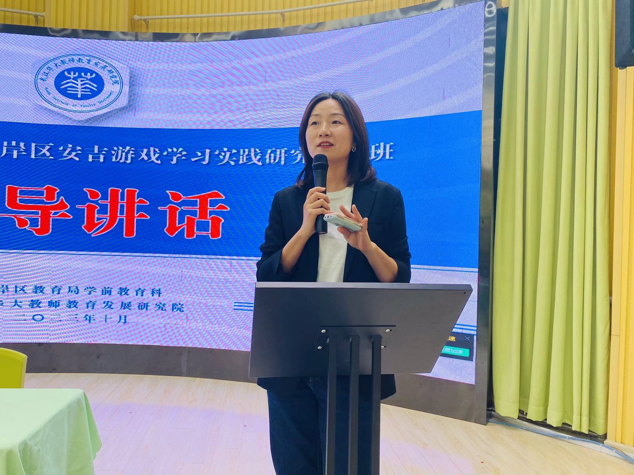 为全面落实“以游戏为基本活动”的理念,深入推进“安吉游戏”实验项目,用高质量的游戏活动助推儿童成长,更好地促进江岸区安吉游戏研究工作的开展,10月15日江岸区安吉游戏学习实践研究培训班学员顺利抵达并举行开班活动,来自江岸区各幼儿园的园长、书记一行24人参加了开班及破冰活动,江岸区人民政府教育督导室副主任督学余蓓、武汉市江岸区教育局学前科科长李喆媛、武汉市江岸区教育局小学教研室教研员严妍出席活动。