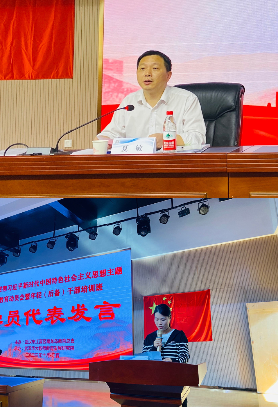 “欲事立,须是心立。”党的二十大报告中指出,要建设堪当民族复兴重任的高素质干部队伍,要努力锻造高素质干部人才队伍,要全面贯彻新时代党的组织路线,加强干部队伍建设,以正确用人导向引领干事创业导向。10月15日上午由武汉市江夏区藏龙岛教育总支主办,我院承办藏龙岛教育系统2023-2024年轻(后备)干部培训班在江城武汉顺利开班。武汉市江夏区藏龙岛教育总支主任朱华、武汉市江夏区藏龙岛教育总支,班主任夏敏及藏龙岛教育系统年轻(后备)干部培训班全体学员共同参加了开班典礼。