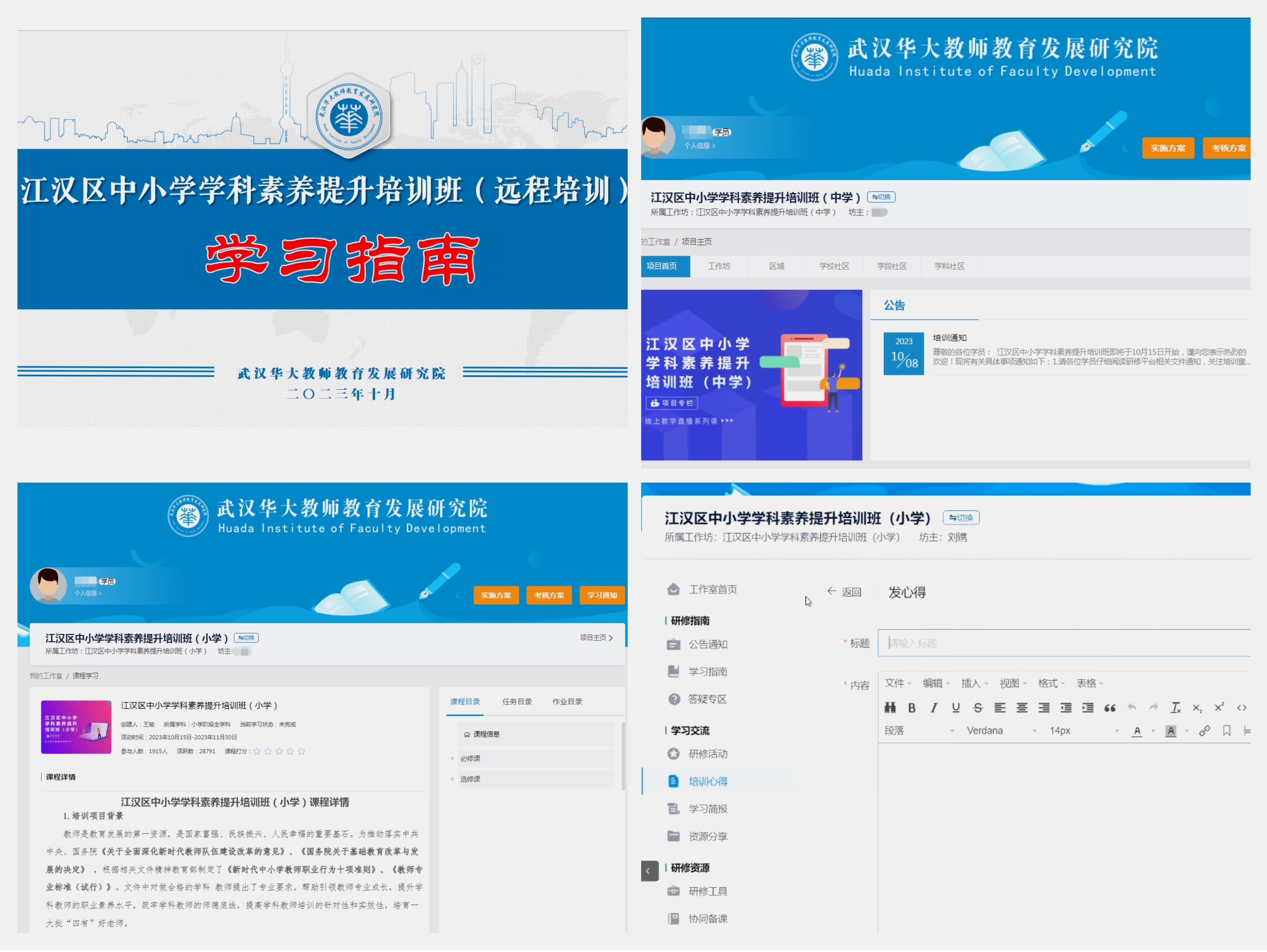 此次培训结合江汉区中小学学科教育状况,聚焦学科素养、教师教育教学水平及项目式课程开发与实施能力提升,以网络研修为载体,围绕“聚焦核心素养,提升教师教育教学能力”为主题,以现代信息技术为主要手段,融合线下优质教育资源,汇集多位专家名师,通过中小学学科培训不断提高中小学学科教师的理论修养、思想政治素质和教育教学能力,为推进新时代江汉区基础教育改革提供强有力的教师资源支持。