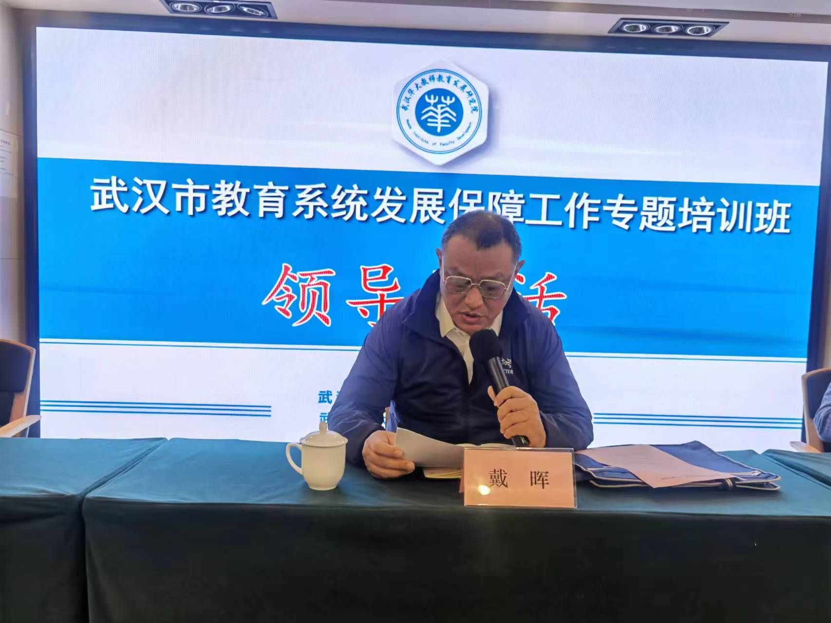 开班典礼上,武汉市教育发展保障中心党总支书记、主任戴晖讲话。戴主任说到本次培训班在蓉城开班,是保障中心组建以来组织的第一次大规模外出学习培训,得到多位领导、各部门的大力支持、鼎力推动才得以成行,机会难得。同时,也说到培训安排的三个亮点:一是专家队伍强、二是培训定位准、三是管理服务好。最后他对全体参训学员提出三点期望:一是珍惜机会,确保培训有效果;二是学以致用,争取对工作有帮助、三是确保安全,严格遵守纪律要求。最后,他预祝本次培训学习圆满完成。