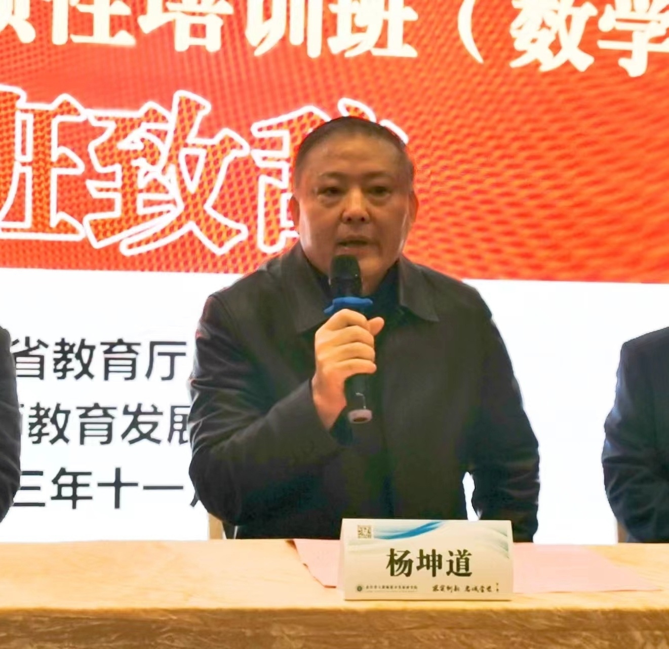 典礼伊始,由我院执行院长杨坤道教授致欢迎辞。杨院长首先向参加培训的各位学员表示由衷的敬意和热烈的欢迎,表示我院会全力为培训的学员做好服务保障,确保培训课程顺利进行。同时也向学员提出三点期盼:一、全面理解新课程标准,积极探索课堂教学改革;二、明确教育科研引领的任务,认真学习新课标改革教学;三、遵守培训生活规则,保障生活学习安全。相信大家定会放下浮躁之心,精心锤炼专业之技,与时俱进,不断创新,为安徽省教育事业蓬勃发展添砖加瓦!