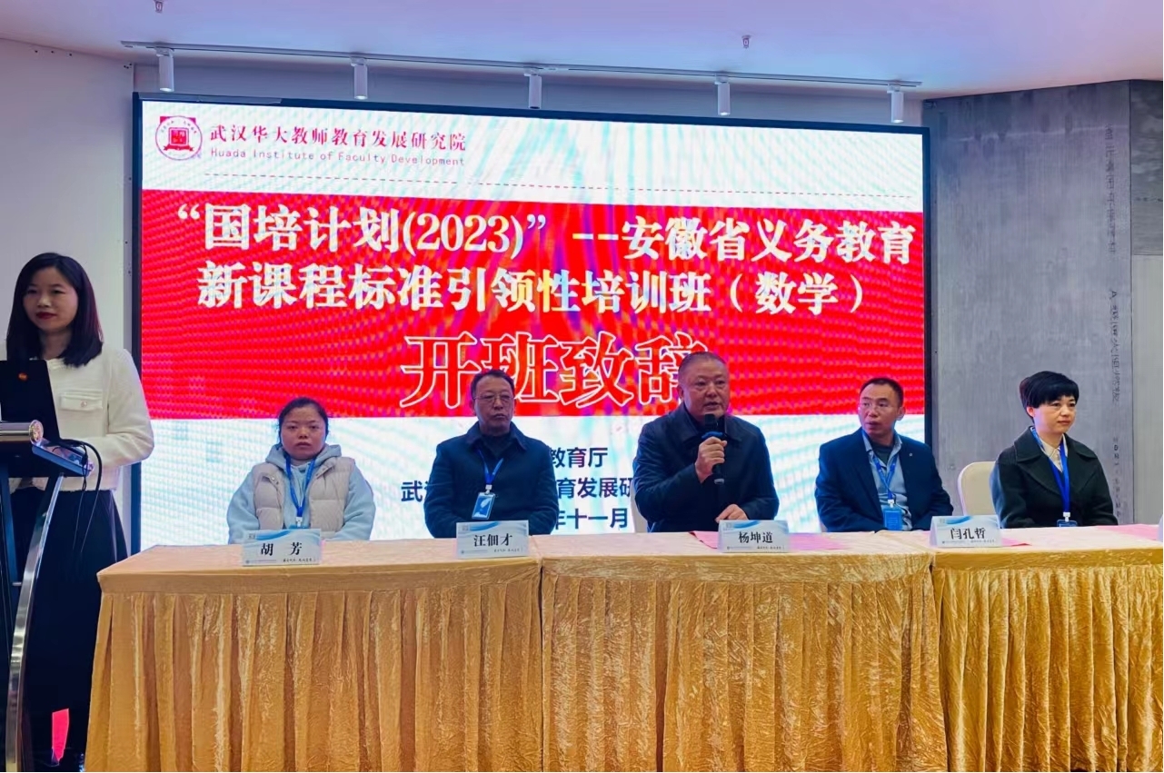 “国将兴,必贵师而重傅。”义务务教育新课程标准是我国教育改革的重要成果之一,它的出现标志着我国教育进入了一个新的发展阶段。为深入学习贯彻党的二十大精神,全面落实习近平总书记关于教育的重要论述和全国教育大会精神,以培养担当民族复兴大任的时代新人为根本任务,推动义务教育课程改革向纵深发展,落实立德树人根本任务,遵循学生发展规律和教育规律,推动树立科学教育教育理念,全面提高中小学数学教育水平。11月17日上午,由安徽省教育厅主办、我院承办的“国培计划”(2023年)安徽省义务教育新课程标准引领性培训班(数学)在江城武汉顺利开班。