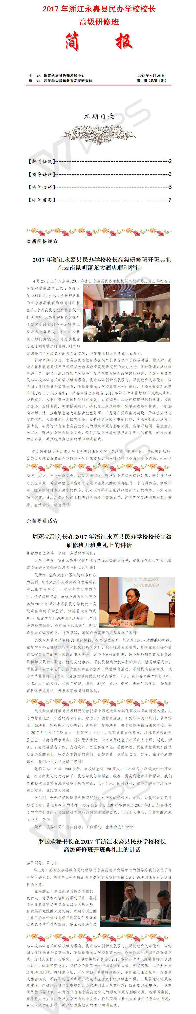 2017年浙江永嘉县民办学校校长高级研修班简报
