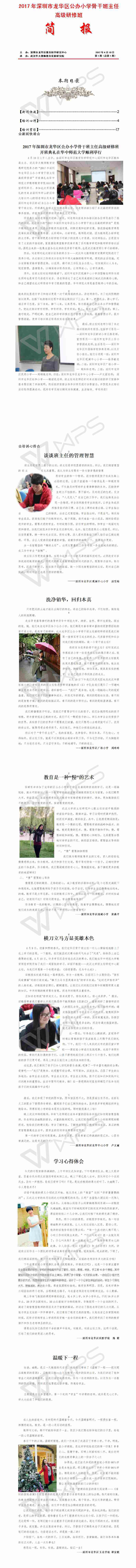 2017年深圳市龙华区公办小学骨干班主任高级研修班简报