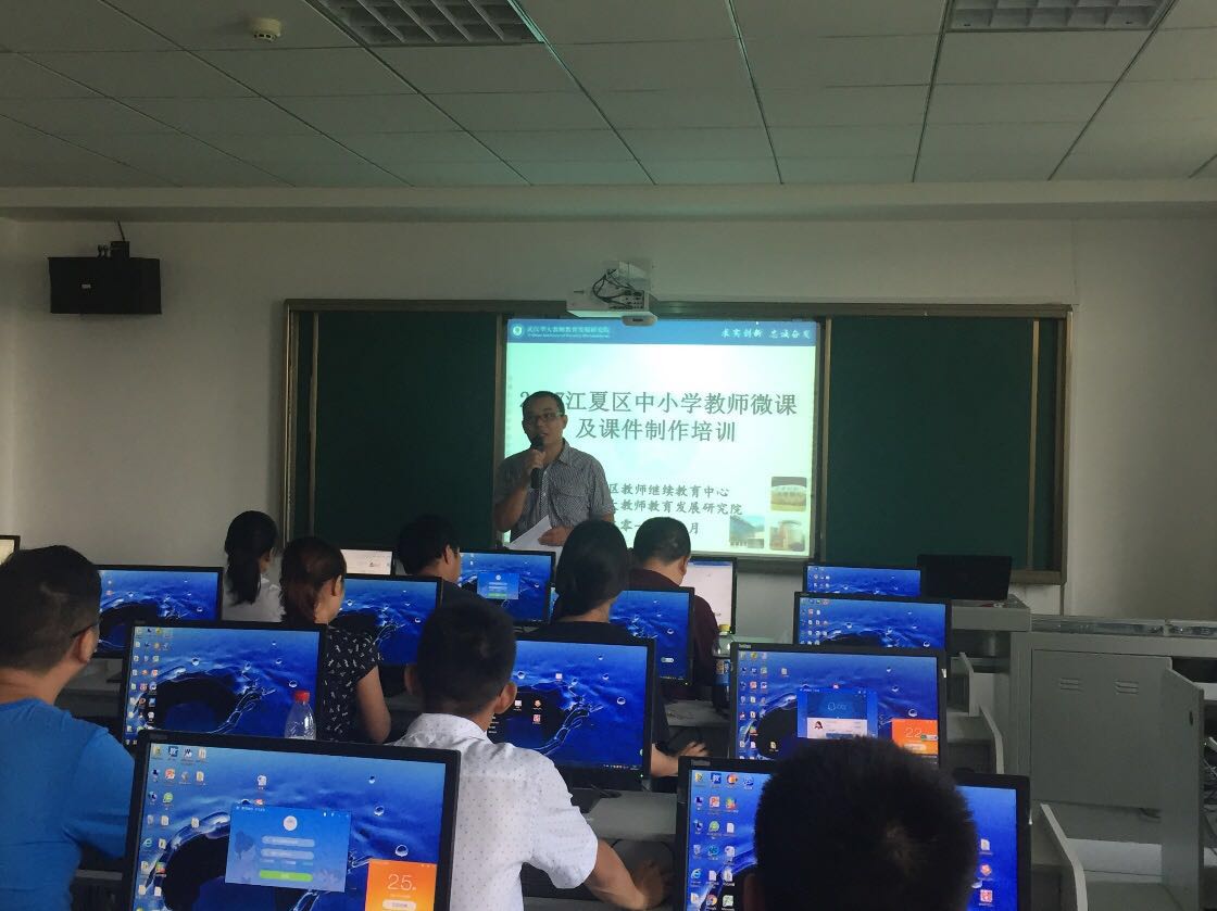 为了激发教师应用信息技术的热情,促进高效课堂改革。8月22日上午8时30分,由江夏区教育局主办,江夏区教师继续教育中心、武汉华大教师教育发展研究院共同承办的“2017年江夏区中小学教师微课及课件制作培训班”在江夏区教育局继续教育中心六楼计算机室顺利举行。此次微课和课件制作培训为期2天,参加本次培训的来自江夏区的各个中小学校的50名优秀教师。