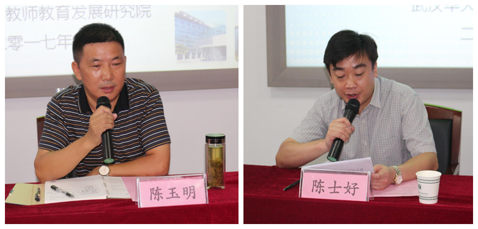 来自贵池区殷汇中心学校的校长陈士好代表全体学员进行发言。陈校长对于区教育局及职教中心领导精心安排的培训表示衷心的感谢,他指出,很高兴来到教育部直属、211、985重点建设师范大学,华中师范大学进行学习,在学校的管理工作中遇到了诸多困惑,渴望新知识新理论,为学校输入新鲜血液,而此次培训正是开拓视野,增长见识的珍贵机会,因此,他代表全体学员表态,一定高度重视本次的充电机会,认真学习,真正做到学有所获,学有所用,希望能在有限的学习时间内满载而归,力争在思想境界有一个新的升华,能力素质有一次新的提高,同时把握好与兄弟学校交流的机会,将所学知识更好地应用到学校管理过程中,更好地为学校师生服务,为贵池区的教育事业贡献自己的力量,定不辜负局领导的重要期望。并代表全体学员承诺,培训期间认真听课,服从各项学习安排,遵从各项制度要求,满怀期待而来,满载收获而归。