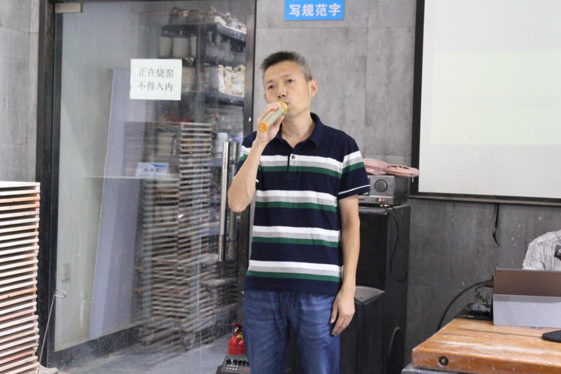 接着,学员代表胡永强老师作发言,他代表全体学员承诺,会珍惜此次培训的机会,并静心学习,认真学习陶艺制作技能,将此次培训所学所得应用到后期教学中去。